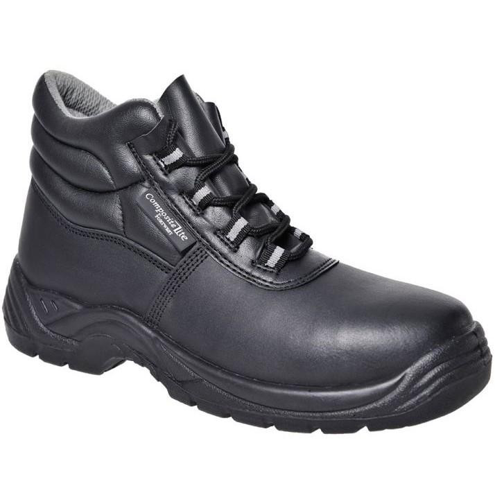 Fémmentes S1PS bakancs kompozit orrmerevítővel és középtalppal. Fekete bőr felsőrész dupla sűrűségű poliuretán talppal.