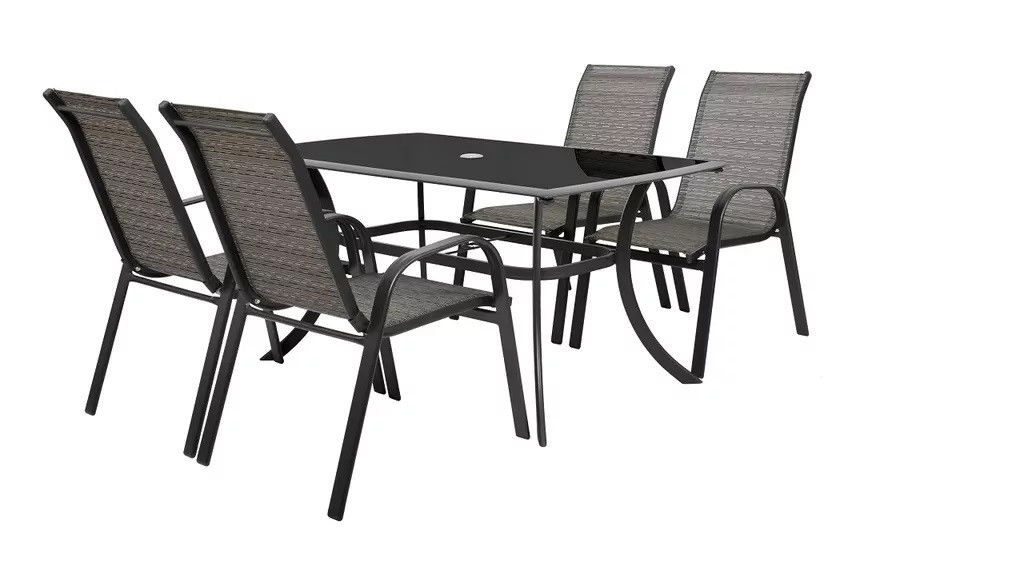 - fekete edzett üveg felületű asztal, amely rendelkezik egy napernyő elhelyezéséhez kialakított lyukkal